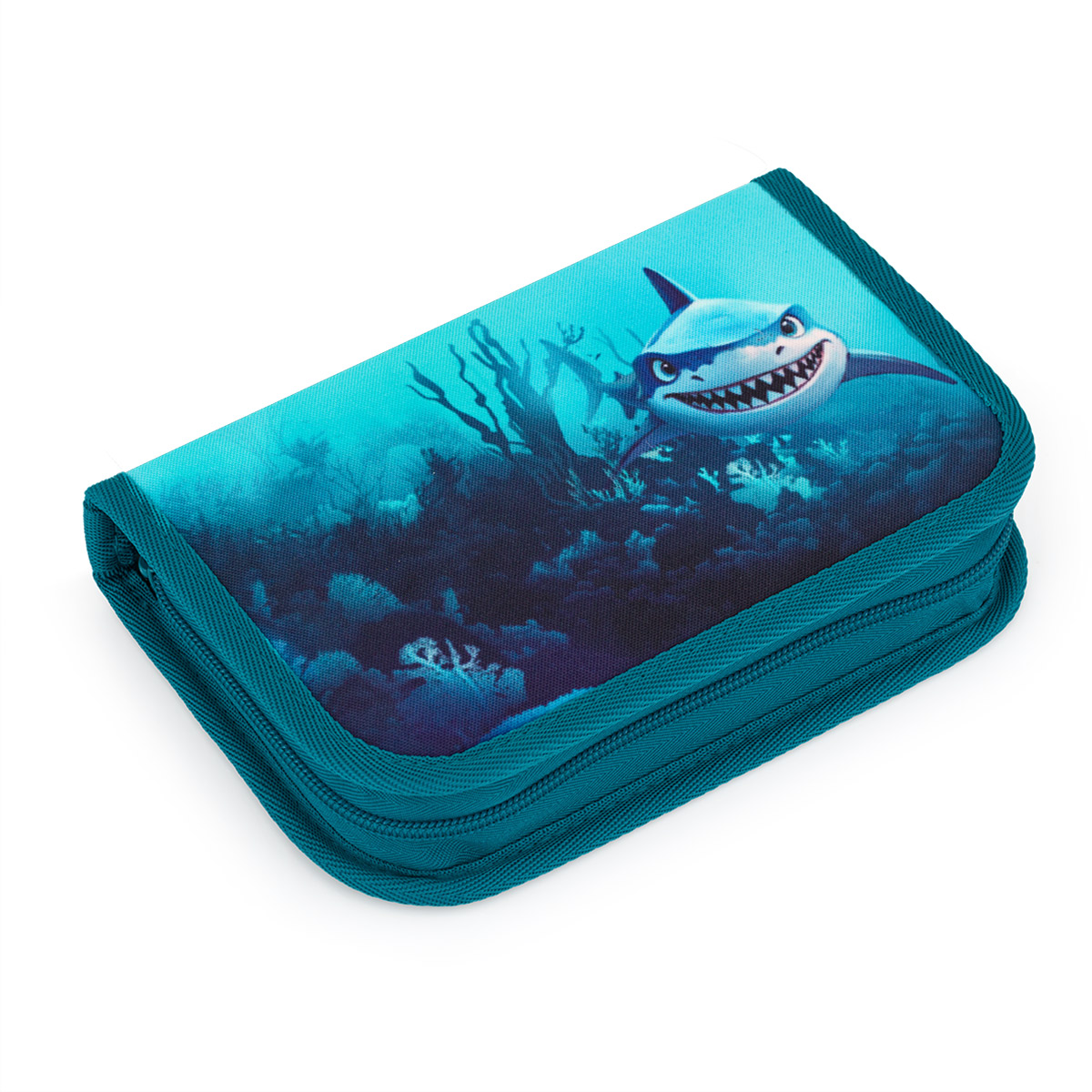 Jednoposchodové školské puzdro s dvoma záložkami. Vďaka pružným gumičkám sa doň zmestí až dvadsaťjeden pasteliek, ceruziek či fixiek. Tri širšie úchyty sú ideálne na pravítko, kružidlo alebo nožnice. Dva väčšie poslúžia na gumu a strúhadlo.