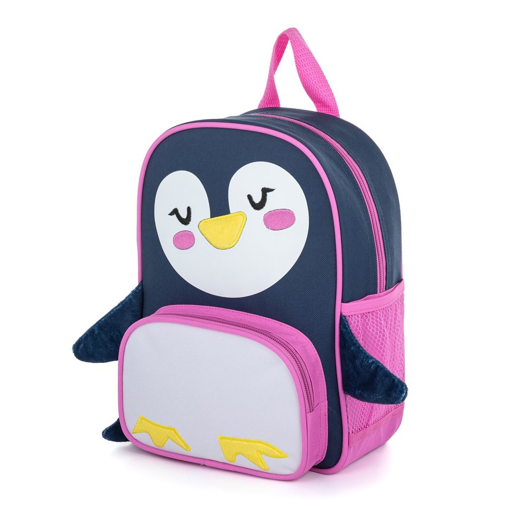 Menší batôžtek vhodný pre deti predškolského veku na voľnočasové aktivity s 3D efektom s motívom tučniaka.