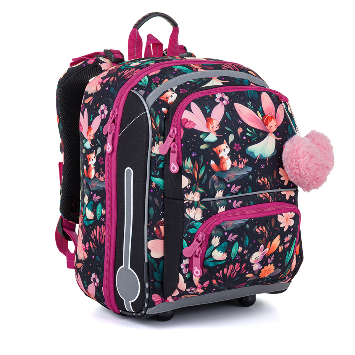 Školská aktovka Čarovný les bola navrhnutá s ohľadom na potreby malých školáčok – je ľahká, prehľadná a krásne sedí na chrbte. Romantický motív víl, kvetov a lesných zvieratiek v kombinácii s ružovými detailmi z nej robí batoh, ktorý si Vaša dcérka zamiluje na prvý pohľad.