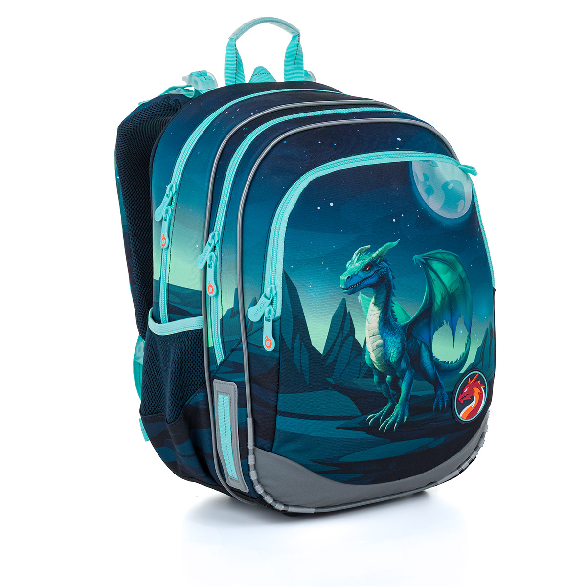 Školská taška ELLY 26016 je navrhnutý v strihu ELLY, ktorý je ideálny pre deti od výšky 115 cm a dokonale poslúži počas celého obdobia od 1. do 4. triedy. Fantazijný motív draka v tmavotyrkysových tónoch prenesie Vaše dieťa do sveta rozprávok a objavovania a premení každý školský deň na malé dobrodružstvo.