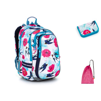 Cenovo zvýhodnený školský set pre školáčku v 2.-5. ročníku. Súčasťou setu sú tieto produkty: LYNN 22008 – Taška s lastovičkami a makmi, PENN 22008 – Školský peračník, ZUZA 19045 – Vrecko na prezuvky