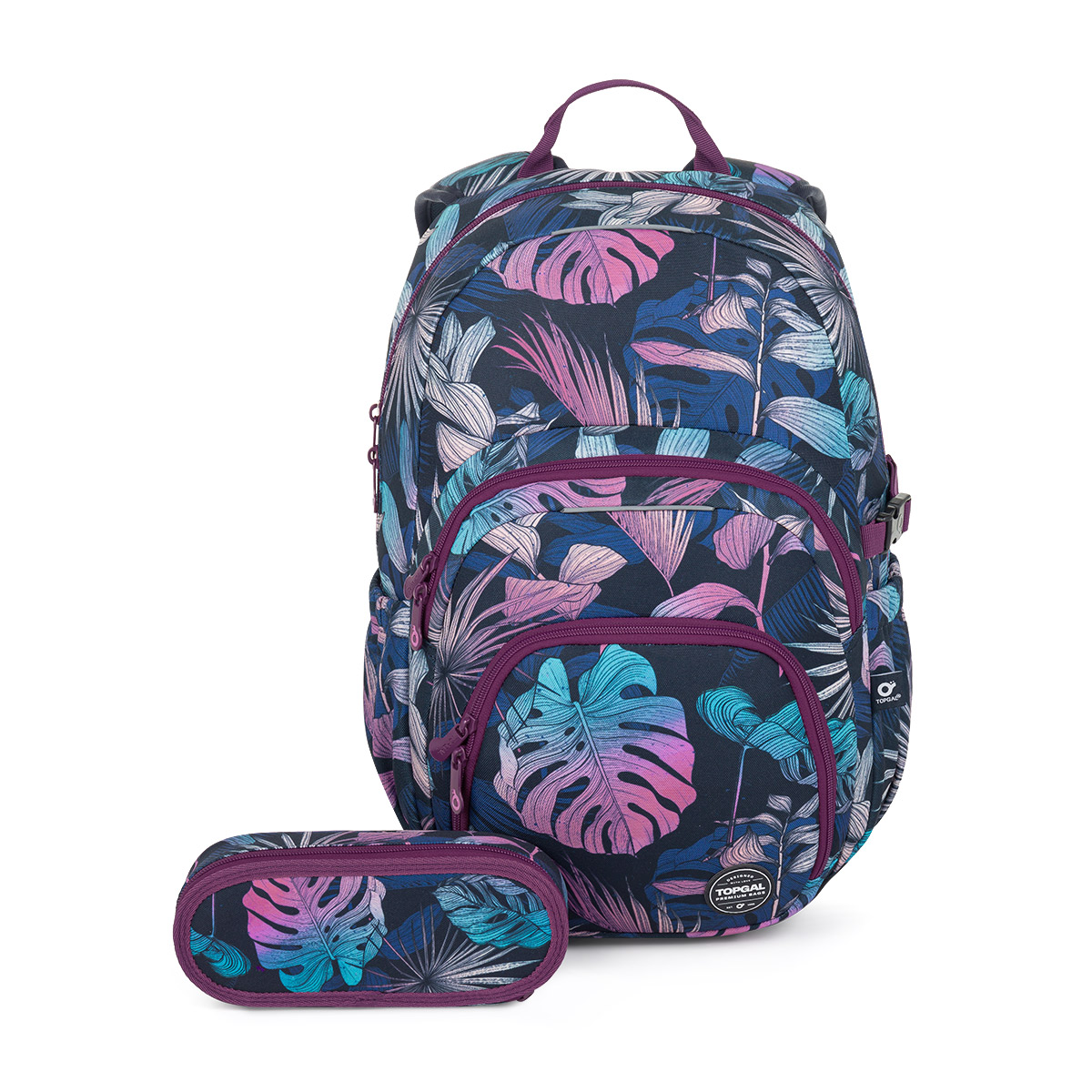 Set tašky s peračníkom pre študenta. Súčasťou setu sú tieto produkty: SKYE 25031 – Študentský batoh Monstera, ETUE 25031 – Študentský peračník